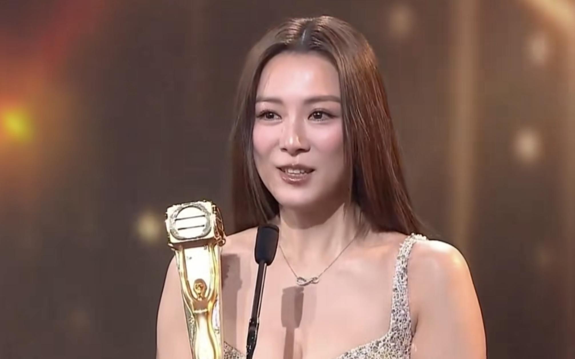 米雪和陈松伶当颁奖嘉宾,套装笔挺,走路带风,活脱脱港片里的女强人穿越而来。汪明荃79岁了,一身亮片礼服,精神头足得像能再唱三小时粤剧。佘诗曼的奖杯捧在手里,像是对她这些年坚持的最好回应。王敏奕拿了女配,金光闪闪的吊带裙衬得皮肤发光,身材丰润却不显胖,走的是那种“我不张扬,但你移不开眼”的路线。