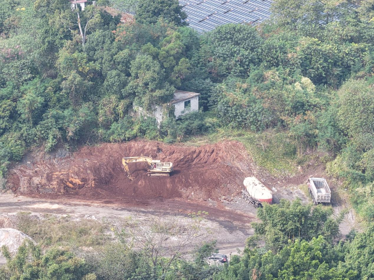 令人震惊的是,就在2025年11月底,群丰村固废倾倒点因村民举报再度引发关注、梅州市生态环境局已介入调查之际,航鑫公司竟趁调查期间,擅自将部分固废转移至丙村镇横石村山坡及梅县铜盘水泥有限公司厂区。据查,横石村山坡再次遭受污染,而铜盘水泥公司根本不具备化工固废处理资质与能力,此举不仅涉嫌违法转运,更对周边环境和居民健康构成新的威胁。