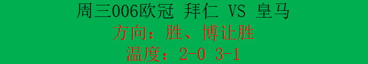 综合来看,拜仁主场气势如虹、阵容齐整、状态碾压,皇马残阵出击、防线残缺、士气低迷,机构深盘支持下,本场看好拜仁大胜而归。