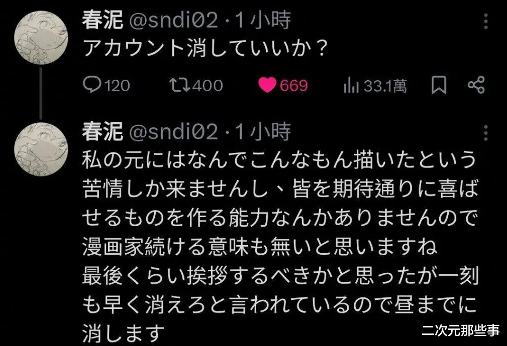 面对汹涌的网络暴力,春泥发布了最后的告别声明,他坦言自己不断收到“为什么要画这种东西”的指责,自认没有能力创作出让所有人都满意的作品,觉得继续当漫画家已经失去了意义,原本想好好与读者道别,却被催促尽快离开,最终彻底删除了自己的社交账号,选择退网。