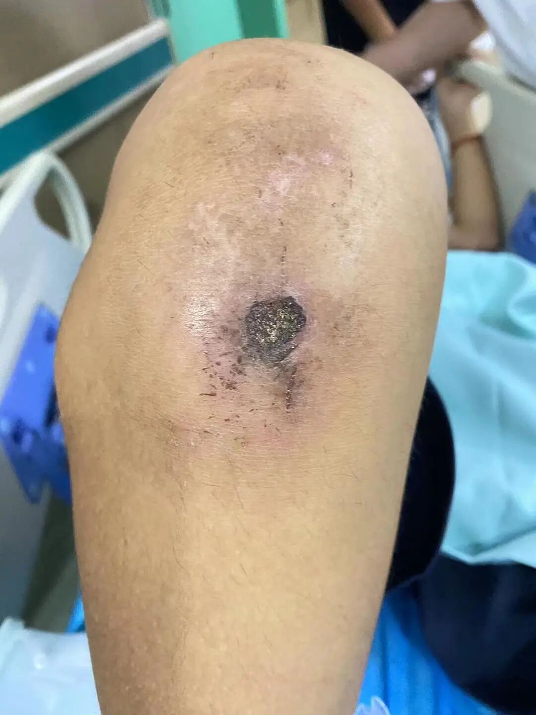 ▲小武左股骨陈旧性骨折,打了钢针、钢板 图据受访人
