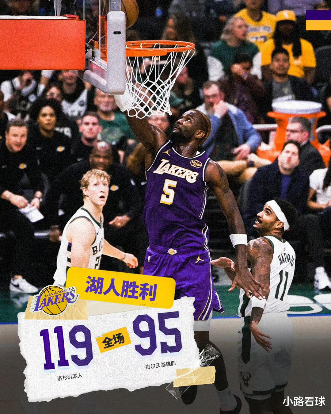 在客场以118比104击败鹈鹕之后,湖人又马不停蹄地奔赴密尔沃基,背靠背客场挑战雄鹿,原以为他们会遭遇一场苦战,结果却是早早将比赛打花,上半场东契奇和里夫斯带队帮助湖人足足领先31分,让比赛直接失去悬念,最终以119比94大胜雄鹿24分,凭借这场比赛的胜利,湖人战绩来到10胜4负,反超火箭升到西部第三,在没有詹姆斯的情况下,5连客取得3胜2负的战绩足够令人满意了,更何况最后两场都是大胜,对士气的提升效果是巨大的,赛后连东契奇都直言:“考虑到目前的情况,今晚是一场不可思议的胜利,这充分说明了我们是一支怎样的球队。”