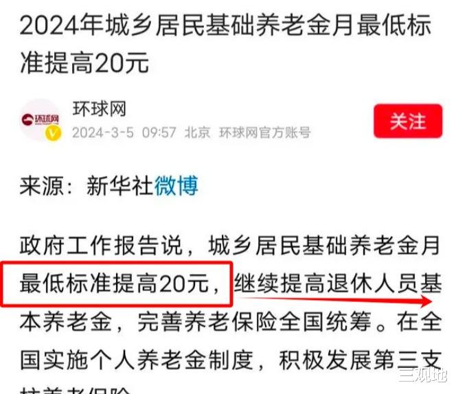 “对了,你还记得咱们村里的张大爷吗?他参加的是城乡居民养老保险。今年他的基础养老金每月最少也要增加 20 元呢!”老李补充道。