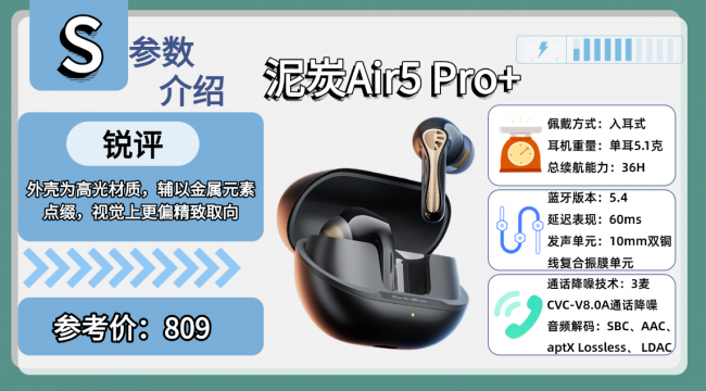排行榜产品3、泥 炭A ir5 Pro+蓝牙耳机