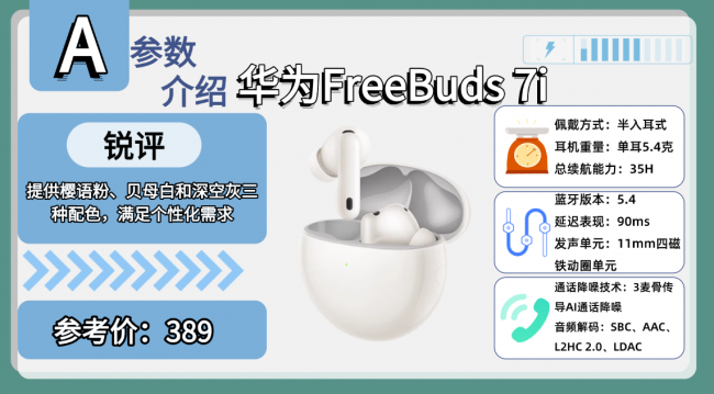排行榜产品2、华 为F reeBuds 7i蓝牙耳机