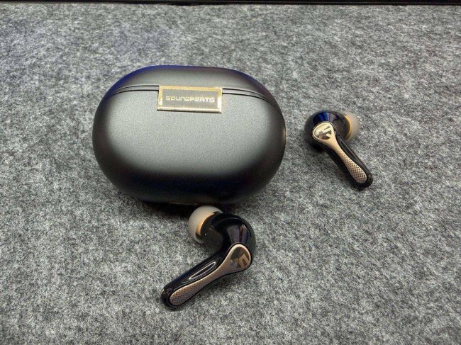 ①这款耳机在外观上延续了精致简洁风格,多种配色可选,机身圆润且前腔采用波纹弧设计,科技感十足。半入耳式结构搭配液态硅胶耳帽,材质柔软且提供多尺寸选择,贴合耳道效果较好,即便长时间佩戴也不会产生明显压迫感。日常通勤或轻运动佩戴稳定,耳帽还具备抗菌处理,保持清洁更方便。