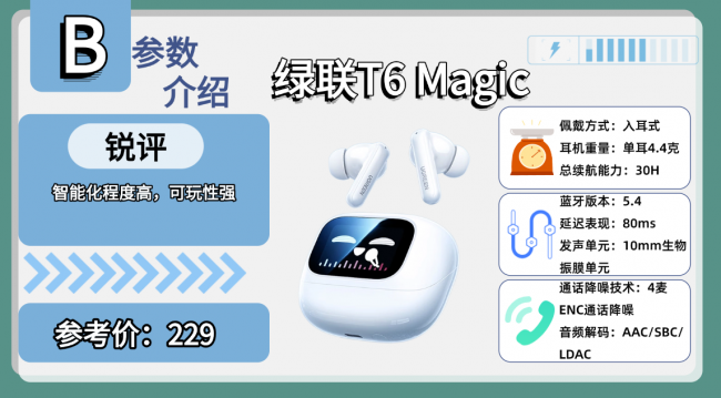 排行榜产品6、绿 联T 6 Magic蓝牙耳机
