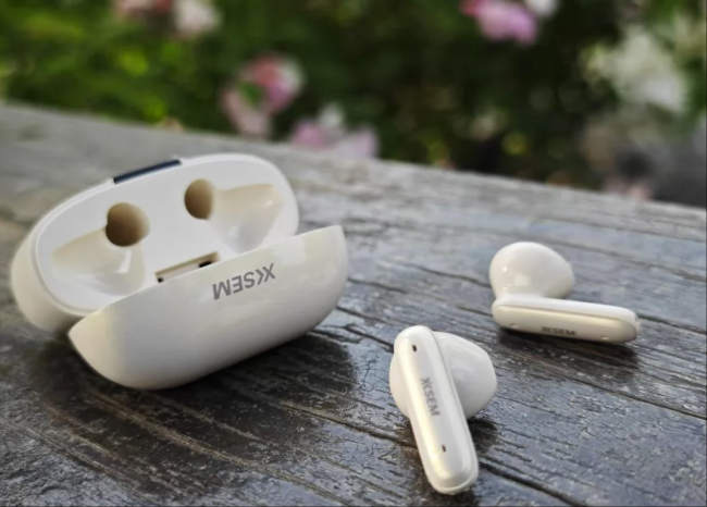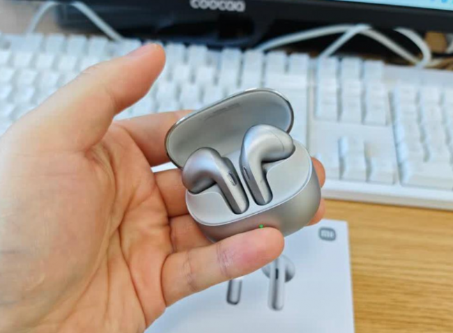 ①这款耳机采用半入耳式设计,单耳重量控制在较轻水平,佩戴时几乎没有明显存在感,长时间使用也不容易产生耳道负担。外观提供钛银色和冰岛白两种配色,整体风格偏简洁耐看,日常通勤或办公场景都比较百搭。机身做工中规中矩,充电盒体积适中,携带方便,日常放入口袋或包中没有压力。