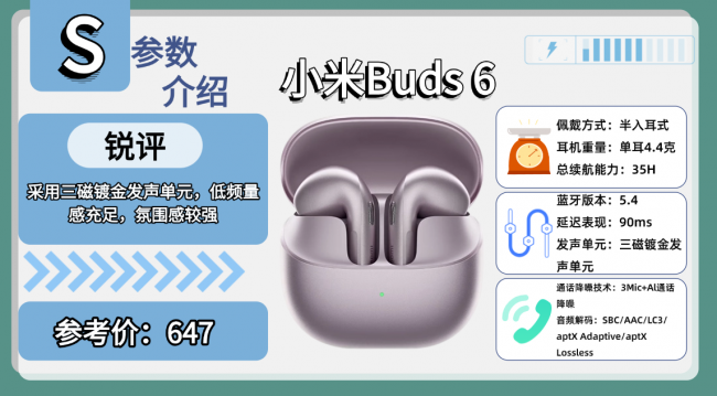 排行榜产品4、小 米B uds 6蓝牙耳机