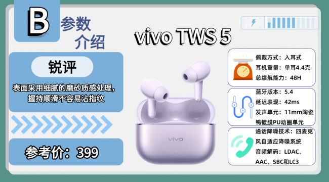 排行榜产品9、V ivo T WS 5蓝牙耳机