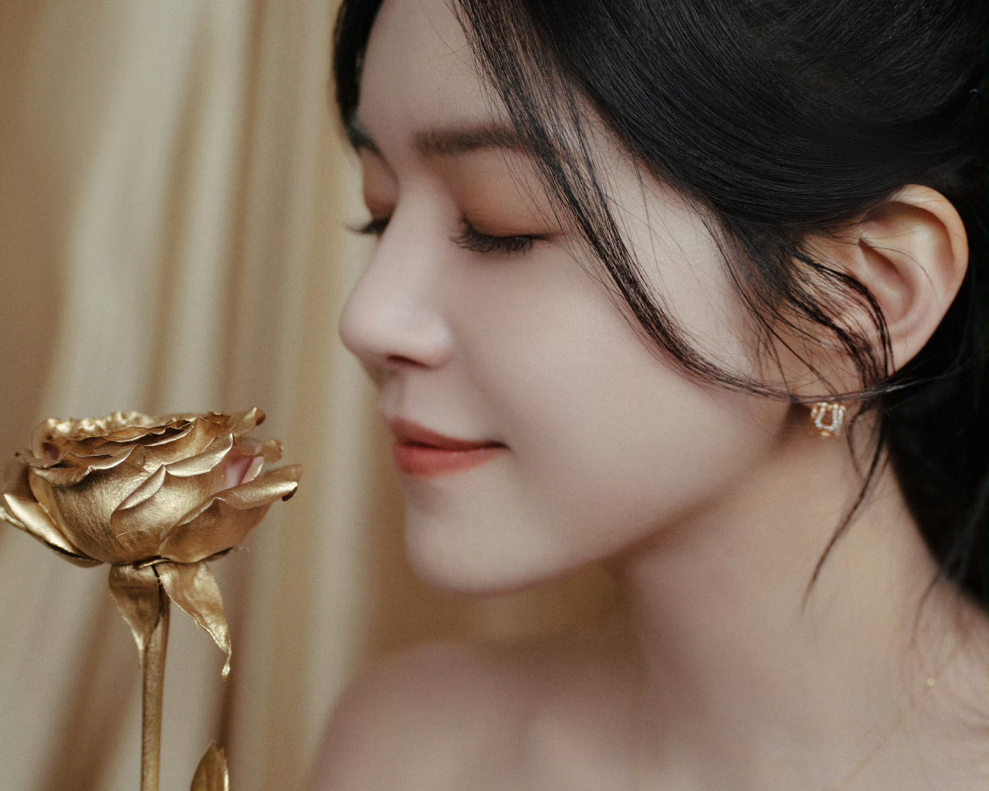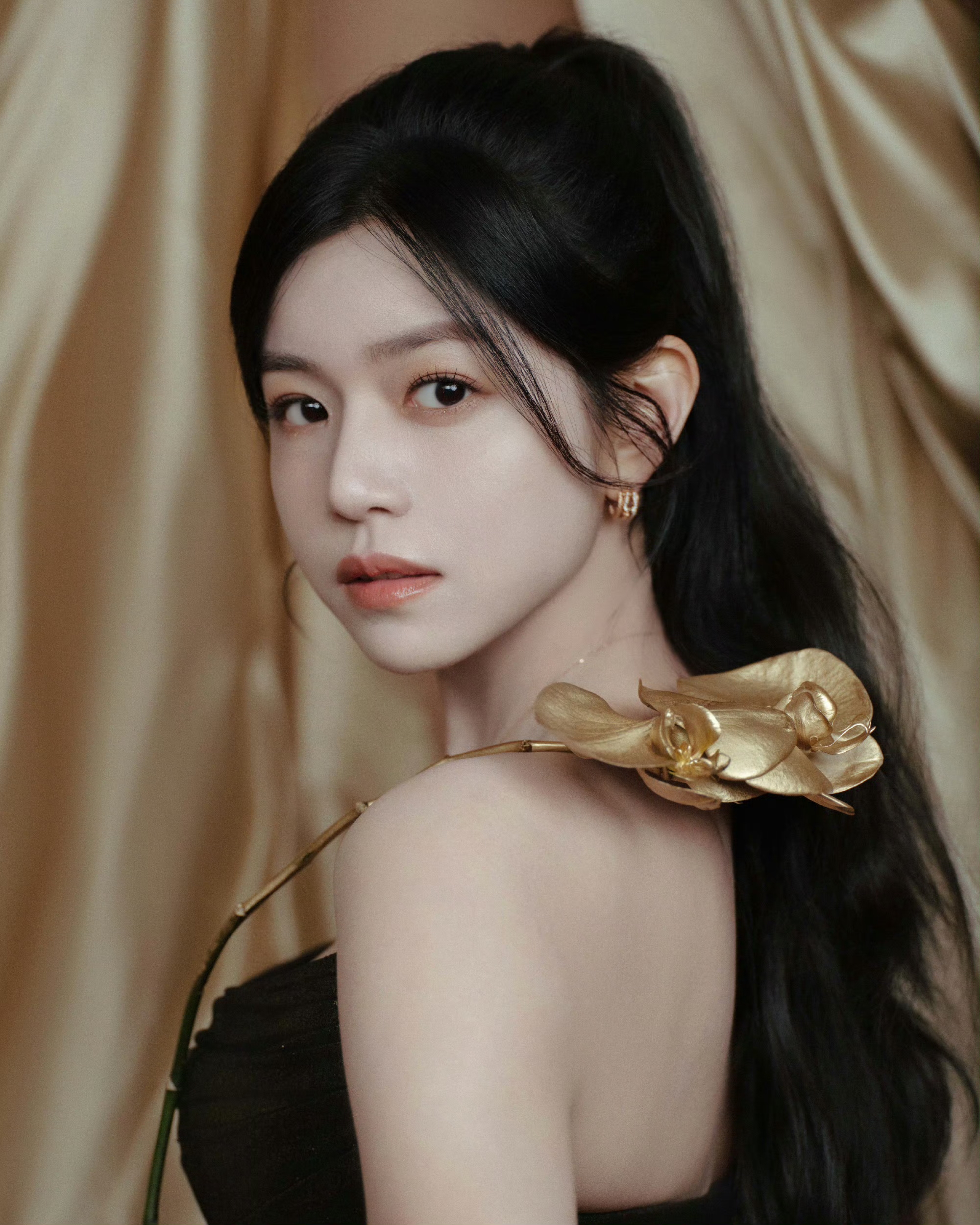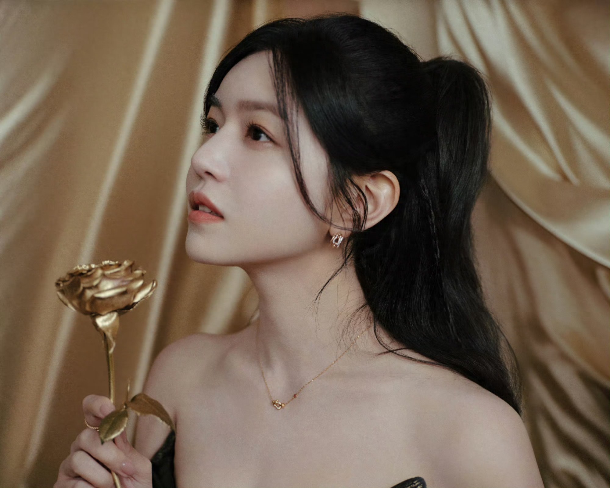 陈妍希鎏金抹胸礼裙
