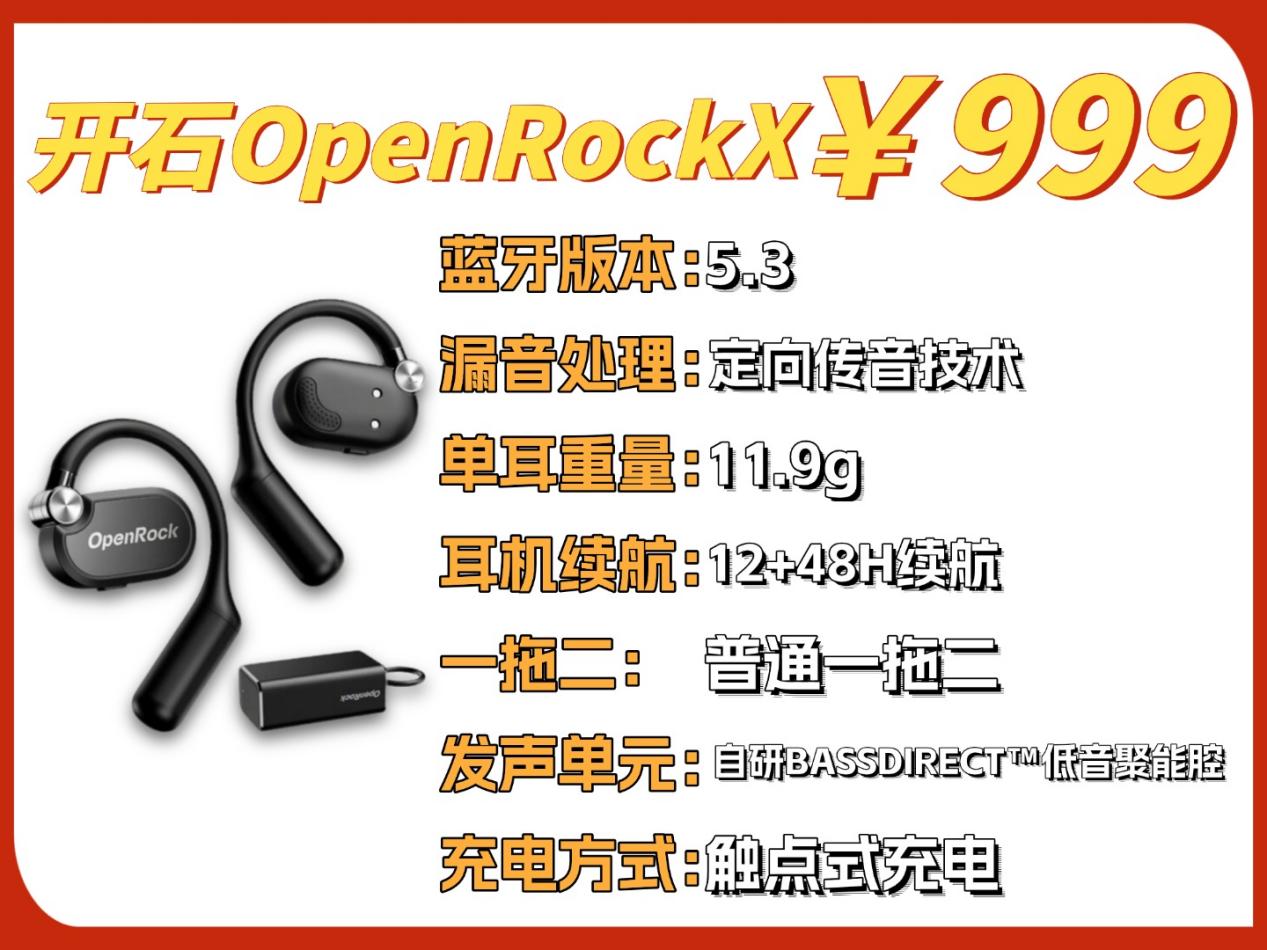 开石Open Rock X采用特制的双轴心转轴与液态硅胶材质,11.9g的轻盈机身能够灵活适配各类耳型。在音质表现上,自主研发的BASSDIRECT™低音聚能腔和14.2mm动圈单元相互配合,在降低音频延迟的同时强化低频效果。性能方面,蓝牙5.3芯片确保连接稳定且低延迟,四麦通话降噪技术可高效消除环境噪音。续航表现出色,单耳可使用12小时,搭配充电仓总续航可达48小时,满足全天候使用需求,兼具运动场景中的实用性以及音乐体验的专业性的。