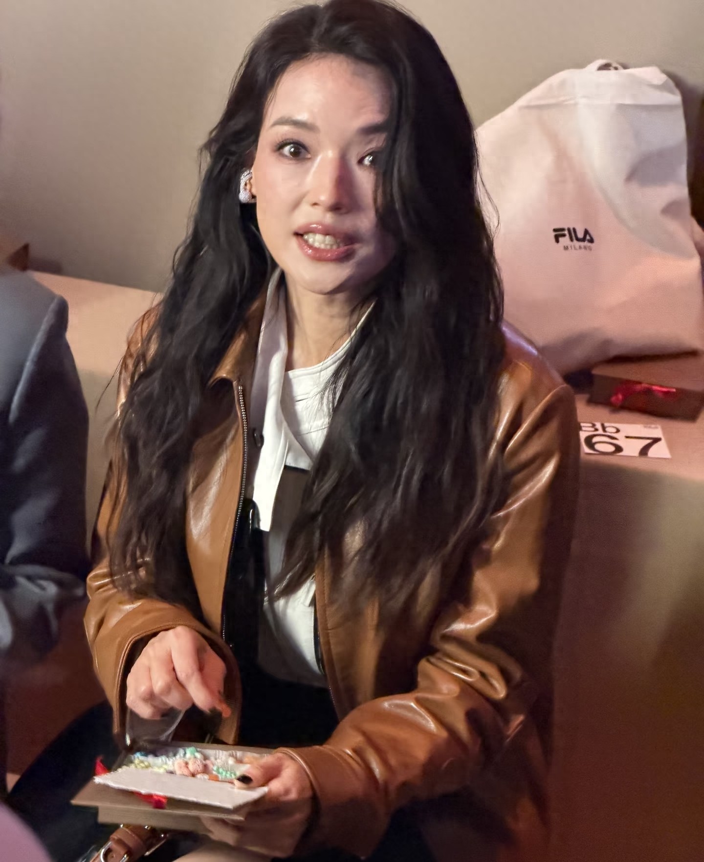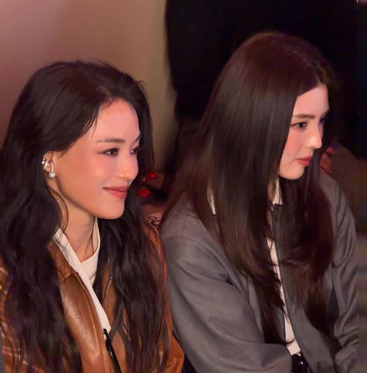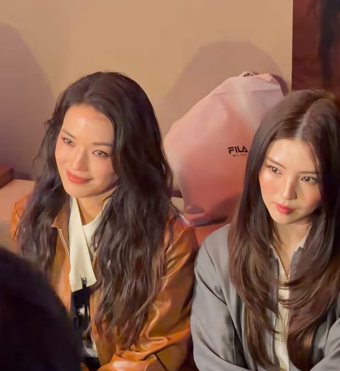 舒淇在米兰看秀和韩国艾斯卡影后尹汝贞同框合影,两人并肩而坐,一个优雅有气质,而舒淇虽然看起来比较小女生,但是气质也完全没输。