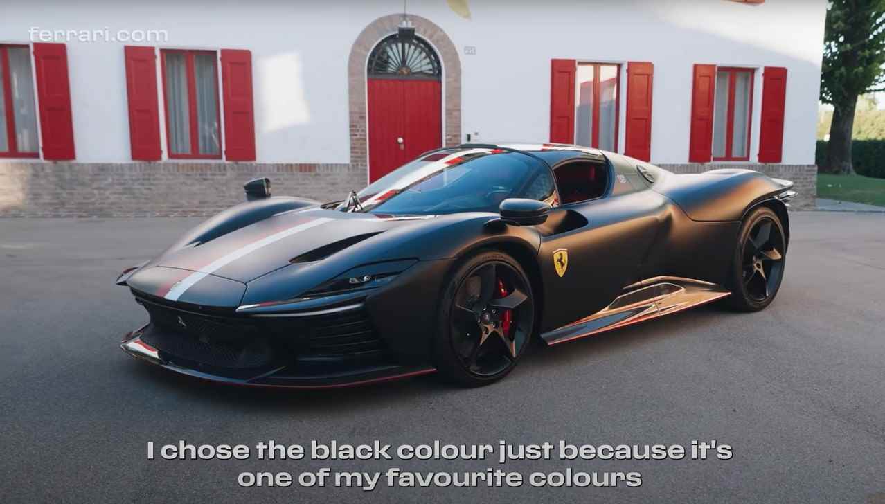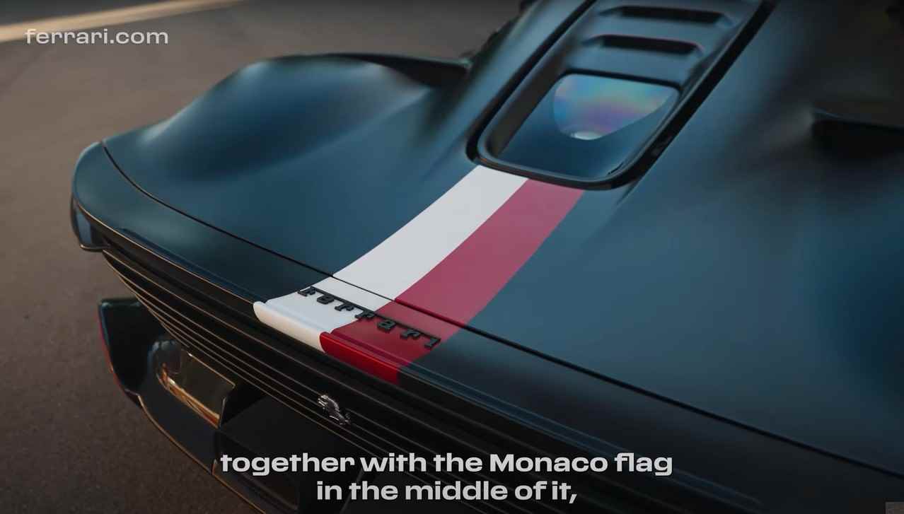 这辆独一无二的法拉利 Daytona SP3,外观以低调的消光黑为主,搭配摩纳哥国旗红白相间的赛道条纹,这配色灵感正是来自Leclerc的赛车头盔。这样的设计,在众多耀眼的法拉利中显得格外低调,却又不失车主个性品味。