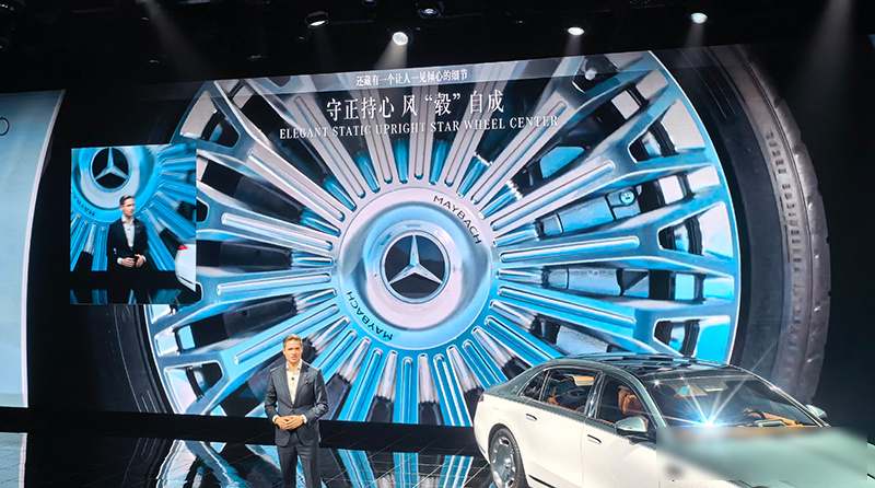 三叉星徽、格栅上的“MAYBACH”字母和C柱标志都改成能点亮的,轮毂中心的三叉星悬浮着旋转,靠滚珠轴承保持一直正立,玫瑰金元素串联起灯组、界面、香氛和氛围灯,形成一套感官语言,这不是简单堆砌颜色,而是让每个细节都指向同一种身份认同。