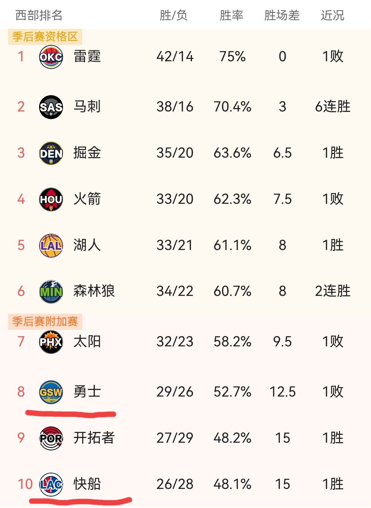 真正的看点在第三档,也就是附加赛区。但这里最扎眼的是那俩豪门——金州勇士和洛杉矶快船,这俩真的危险了。