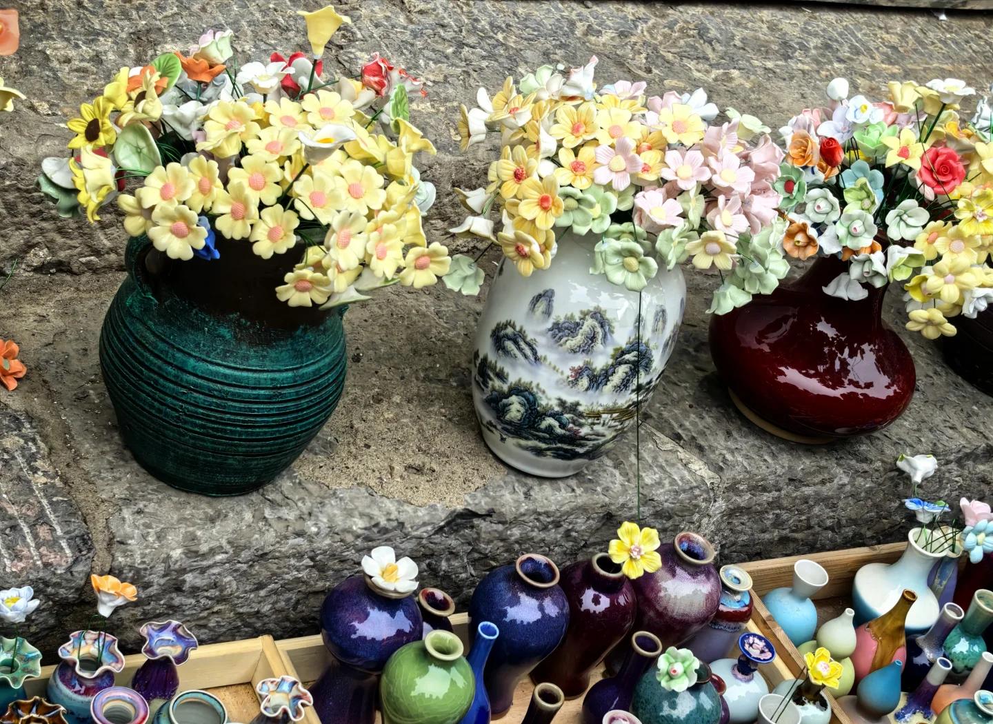 钧瓷的诞生,堪称自然与匠心的双重奇迹。我们的匠人老师正在演示传统72道工序,而真正的魔法,藏在釉料配方里!钧瓷采用神垕镇独有的孔雀岩、玛瑙岩,加入铜、铁等金属元素,经过素烧、上釉、釉烧三重淬炼。现代技术虽已将成品率提升至60%,但每一件钧瓷仍需经历18小时的窑火洗礼,才能诞生独一无二的“星辰釉”“鸡血红”!