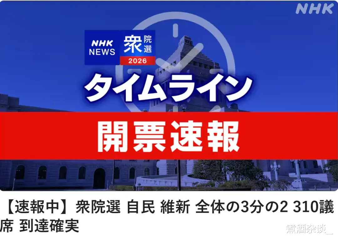 自民党的席位确定超过310席,单独达到超2/3比例。