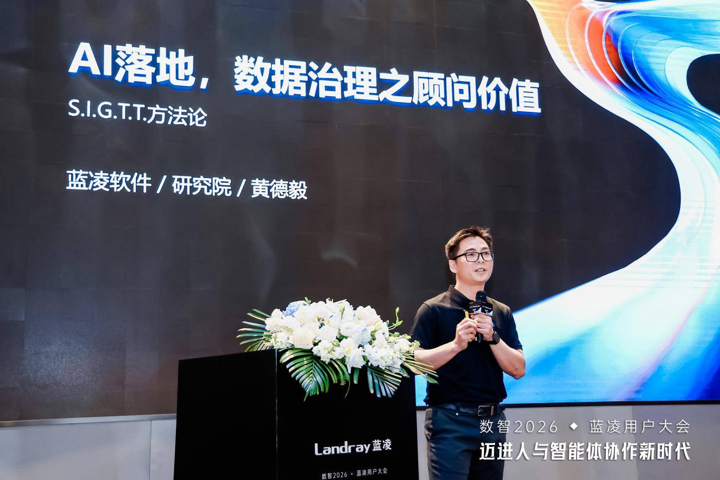 蓝凌研究院副院长黄德毅围绕“AI落地的数据治理核心价值”,讲解了蓝凌S.I.G.T.T.数据治理方法论。他强调,数据治理在“业务意图转化为数据资产”环节具备不可替代的核心作用,可有效破解企业数据多源散乱、场景失真等AI落地难题,为智能应用落地筑牢数据根基。