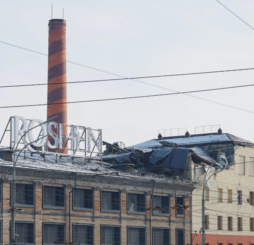 曾经那个挂着醒目“Roshen”招牌、标榜着乌克兰民族工业骄傲的工厂,在此次爆炸中扭曲变形,并沦为废墟。