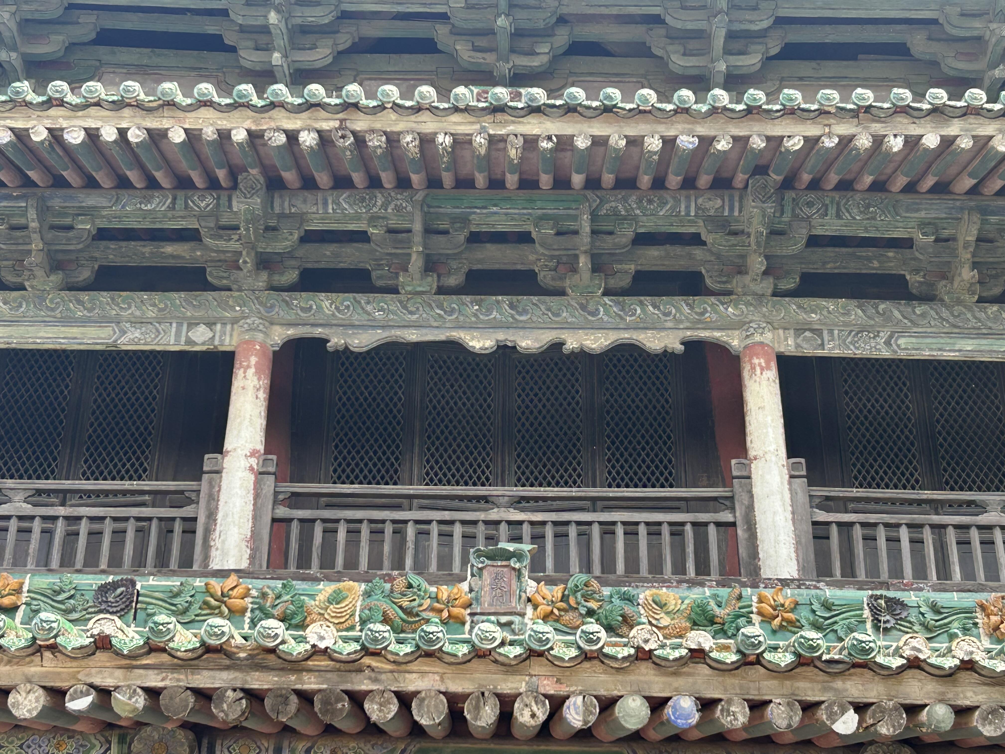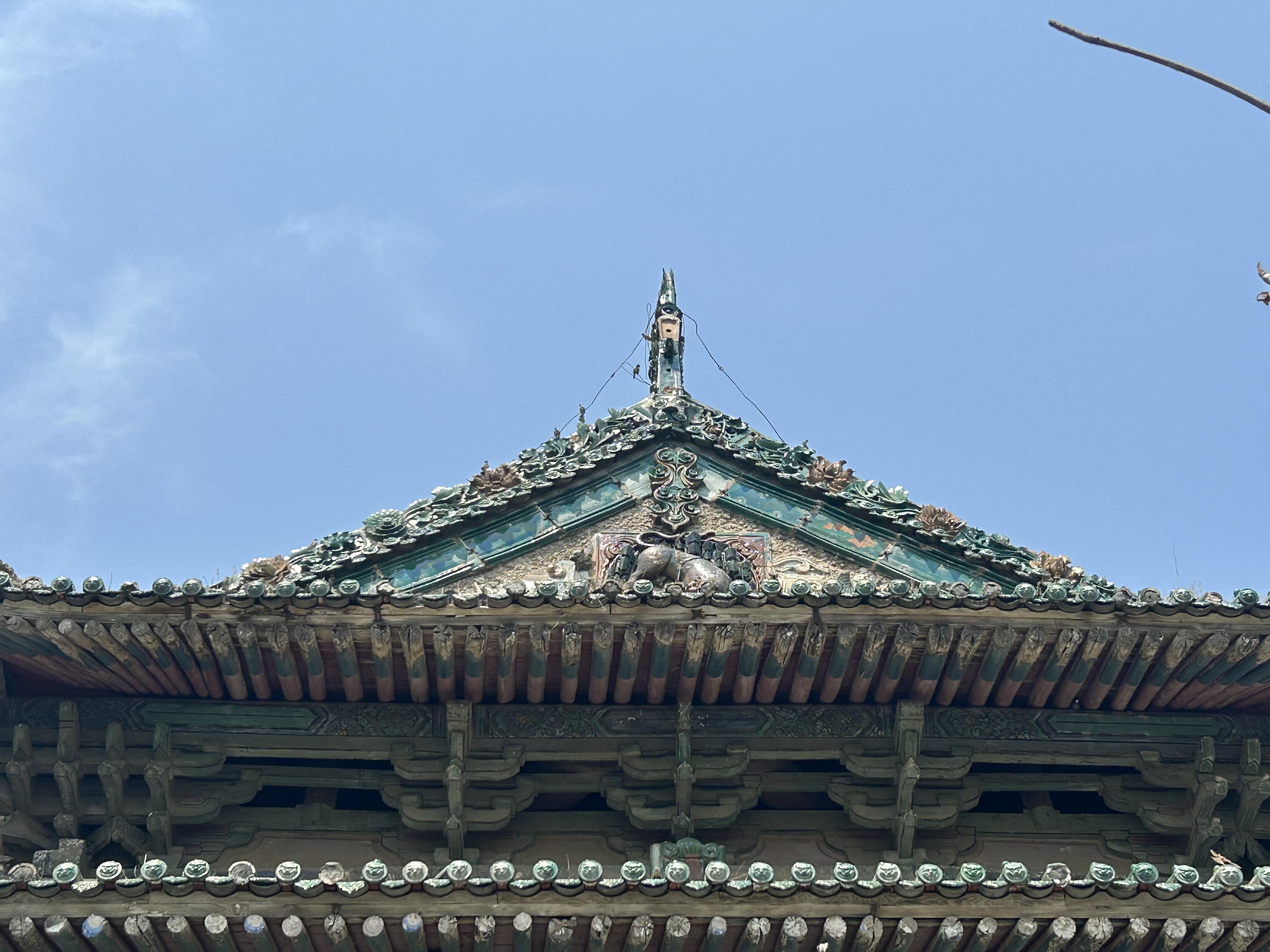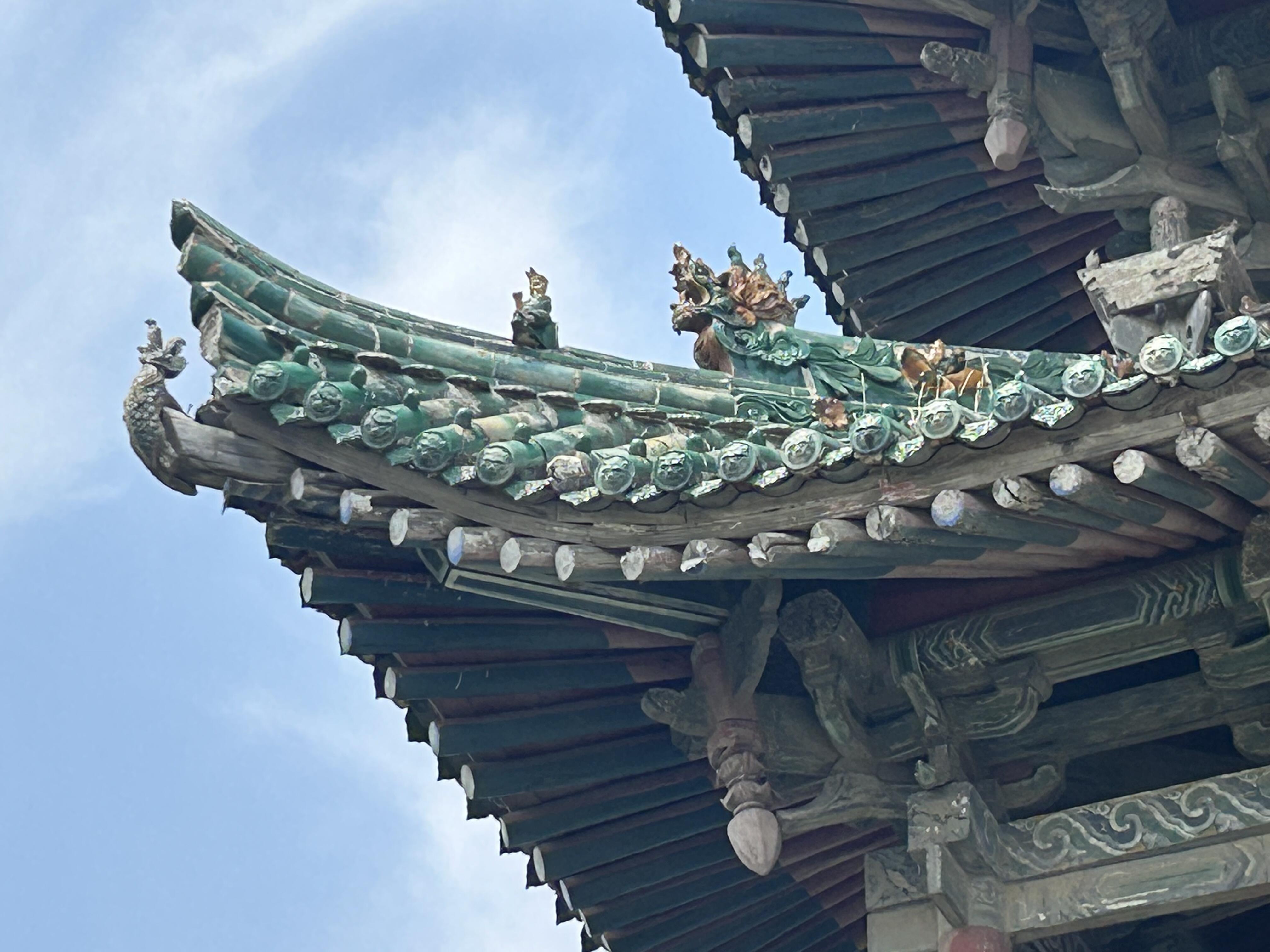 站在岱祠岑楼前,仰望着这座古老的建筑,它的琉璃筒瓦在阳光下闪烁着微光,仿佛是历史的碎片在熠熠生辉;斗拱挑角像是展翅欲飞的飞鸟,灵动而富有生气;雕梁画栋上的图案虽历经风雨侵蚀,却依然能让人想象到当年的精致与华美。抚摸着楼内的宋代金柱,粗糙的质感传递着千年前的温度,那一刻,时间仿佛凝固,我与历史有了一场跨越时空的对话。
