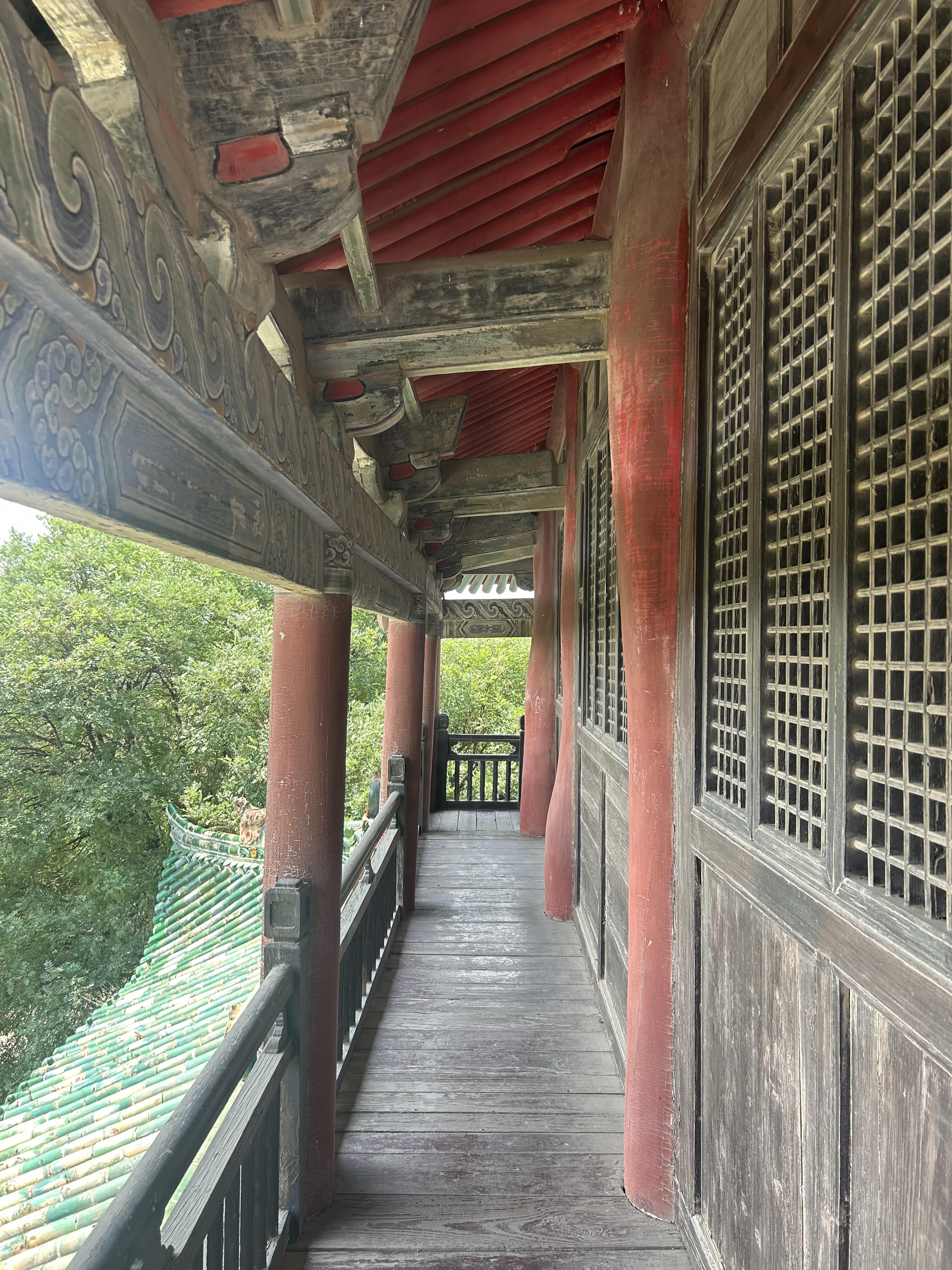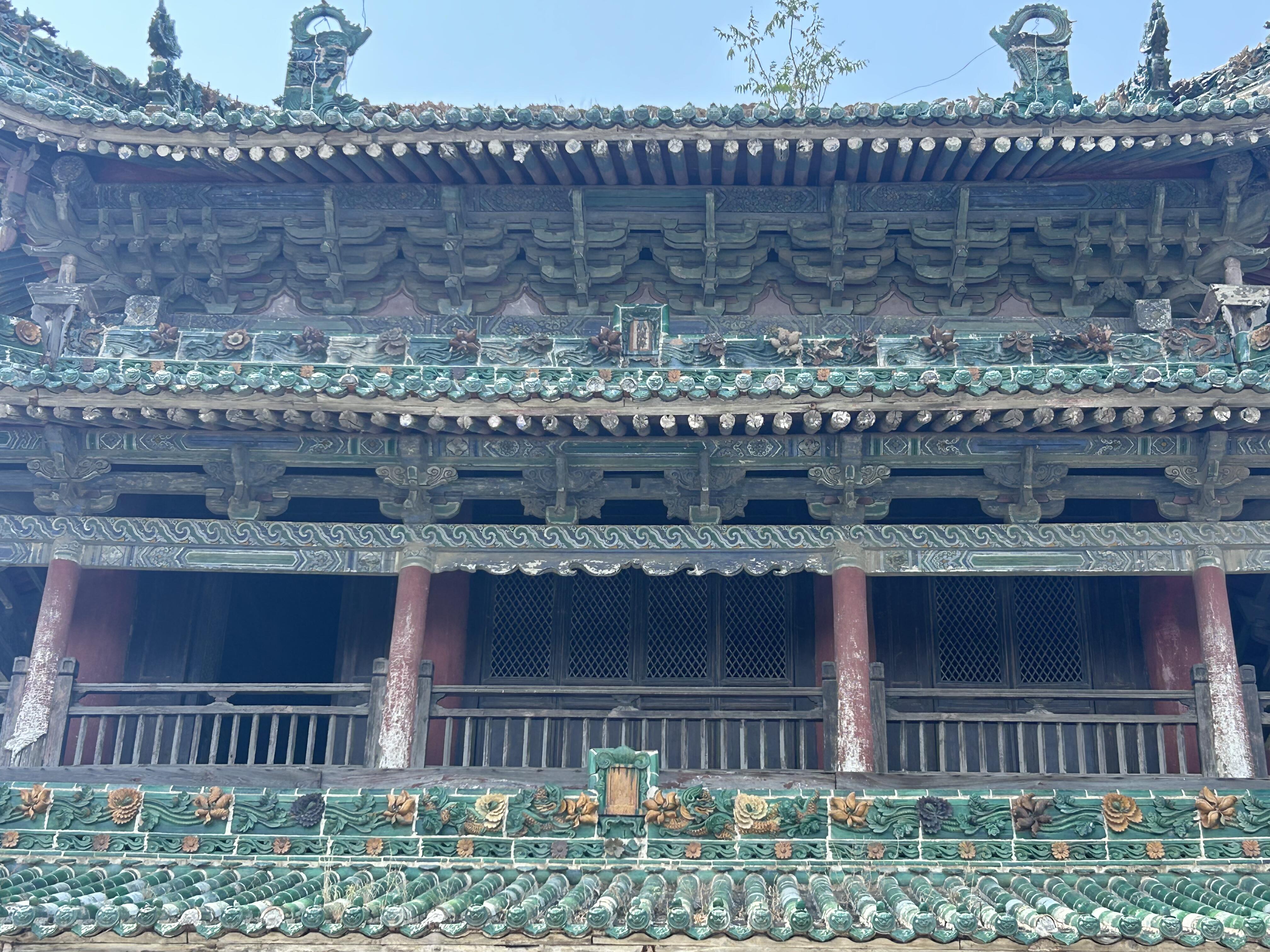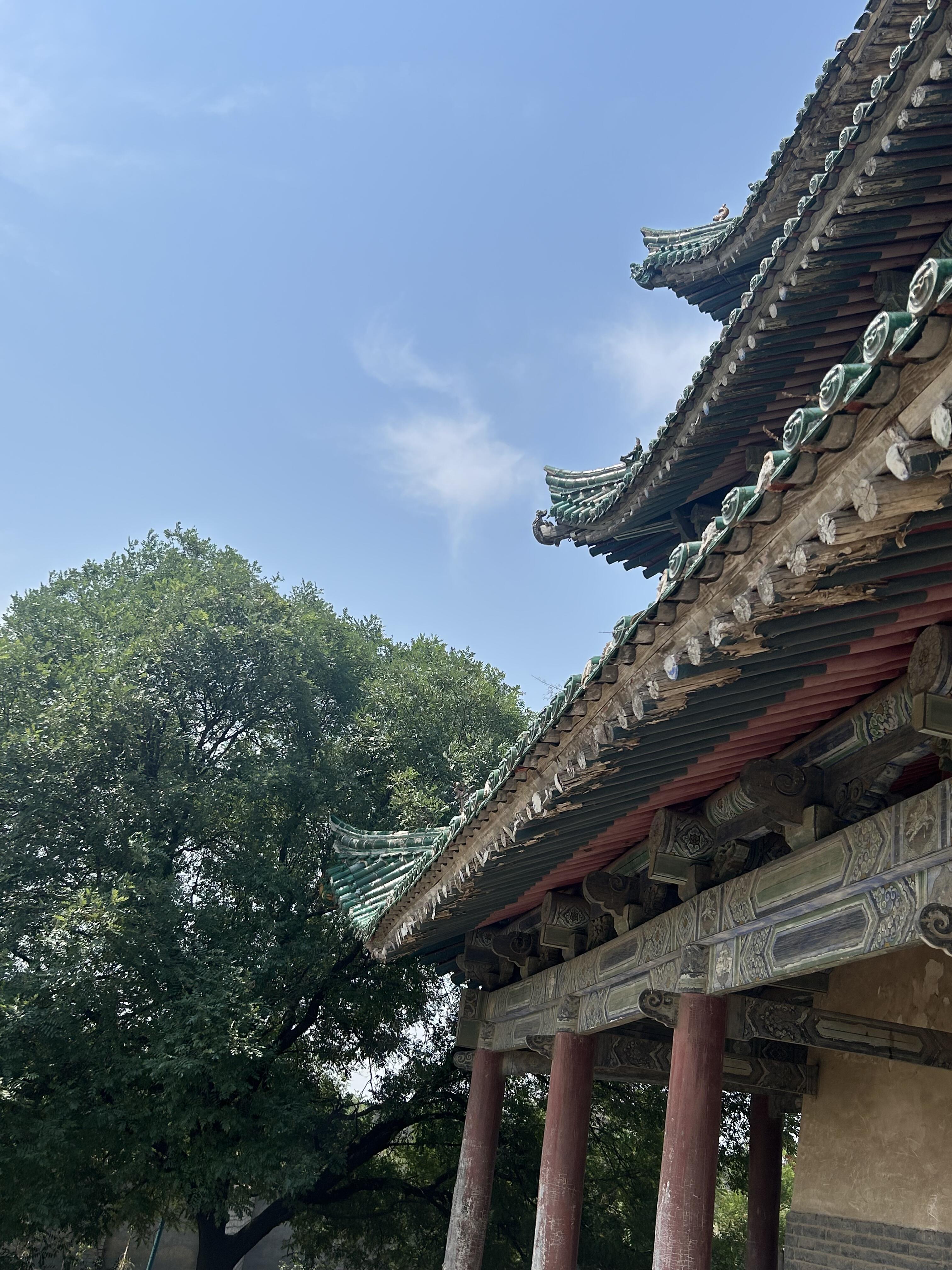 站在岱祠岑楼前,仰望着这座古老的建筑,它的琉璃筒瓦在阳光下闪烁着微光,仿佛是历史的碎片在熠熠生辉;斗拱挑角像是展翅欲飞的飞鸟,灵动而富有生气;雕梁画栋上的图案虽历经风雨侵蚀,却依然能让人想象到当年的精致与华美。抚摸着楼内的宋代金柱,粗糙的质感传递着千年前的温度,那一刻,时间仿佛凝固,我与历史有了一场跨越时空的对话。