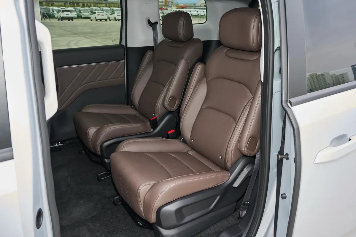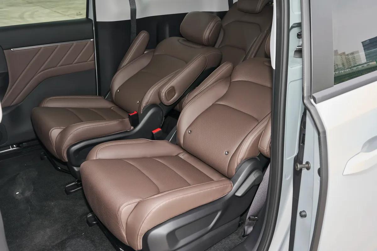 进入车内,星光730 PHEV版的空间表现令人惊叹,因为每个人的座位都像专属VIP,3331mm座舱内部空间、2910mm越级超长轴距和1500mm横向宽度,真的是肉眼可见的宽敞和舒适,"2+2+3"真7座布局下,第 三排空间利用率非常高,不像有些车,三排纯属摆设,靠背角度可调,乘客坐姿更舒适,实测发现,第 三排至顶棚超1.2米,可容纳6岁左右儿童自由活动;第 二排靠前位置至第 三排距772mm,轻松容纳一大一小,打造沉浸式家庭影院体验。座椅设计更是下足功夫:前排座椅可180°大角度放平,秒变舒坦大躺椅;中排配备双侧扶手,多角度可调;后排座椅可4/6分比例放倒,靠背可调至127°。10mm座椅复合皮面久坐不累,高舒适型曲线设计支撑腰背,呵护腰椎,特别贴心的是,地板纯平设计让踩踏更舒适,细节处尽显匠心。像周末带着全家去郊游,孩子们在宽敞的后排自由活动,老人们舒适地靠在可调节的座椅上,我就在前排享受着驾驶的乐趣,这样的出行体验,正是星光730 PHEV版带来的全新生活方式,也是非常适合现在的五口之家或者六口之家。