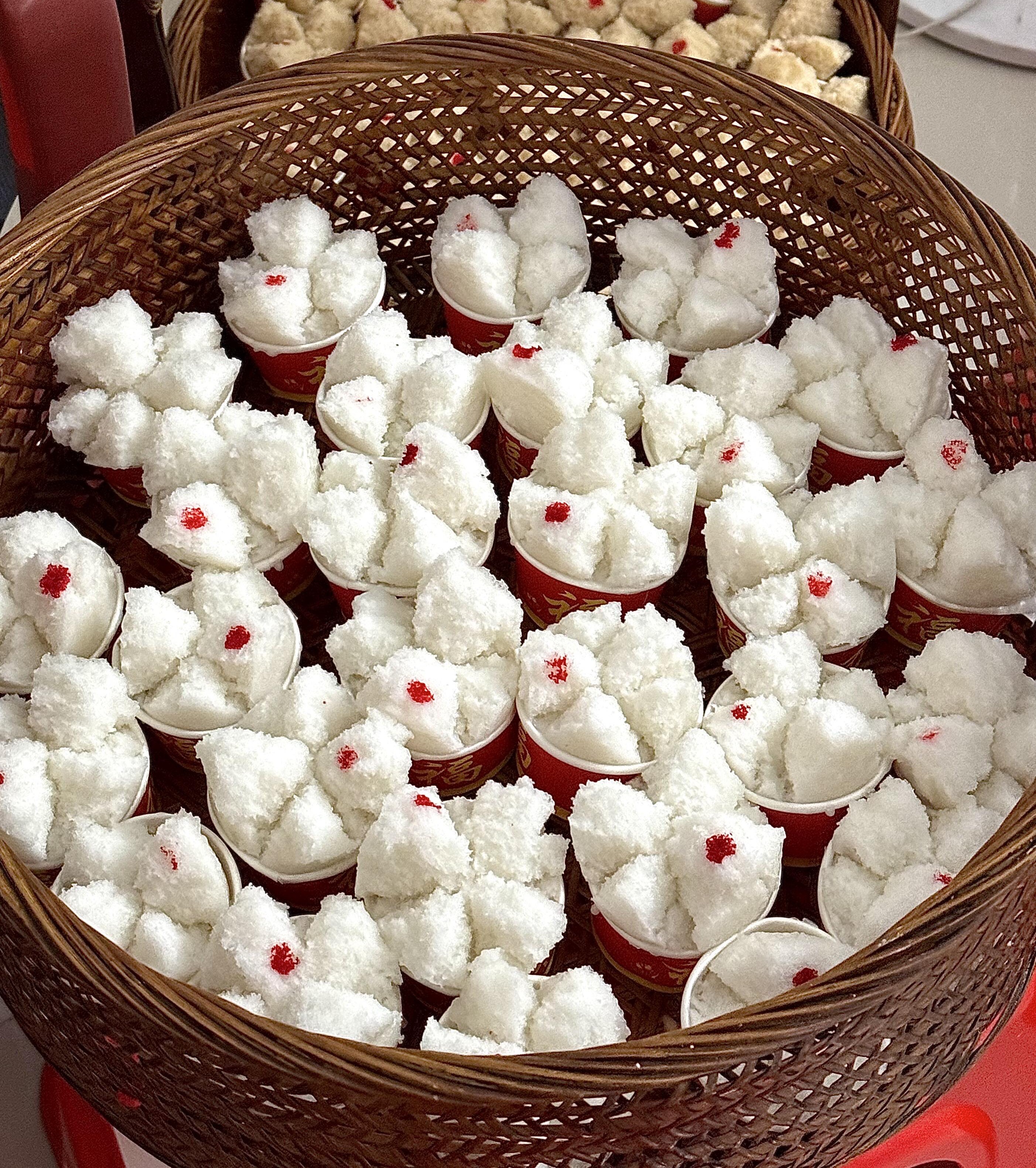 碗糕顶部裂开的“笑口”是关键,“笑口”越大,寓意来年越“发发发”。碗糕有白糖和红糖之分,好吃的红糖碗糕,本地人称为“田螺肉”碗糕,指的是很Q弹,不沾牙的意思。泉州人爱吃的碗糕,年节必备,寓意满满,可以搭配花生汤、豆浆当早餐吃,也可以切片煎着吃。当然,在我心里,最好吃的永远是妈妈刚做好新鲜出炉的时候,这就是过年家的味道。