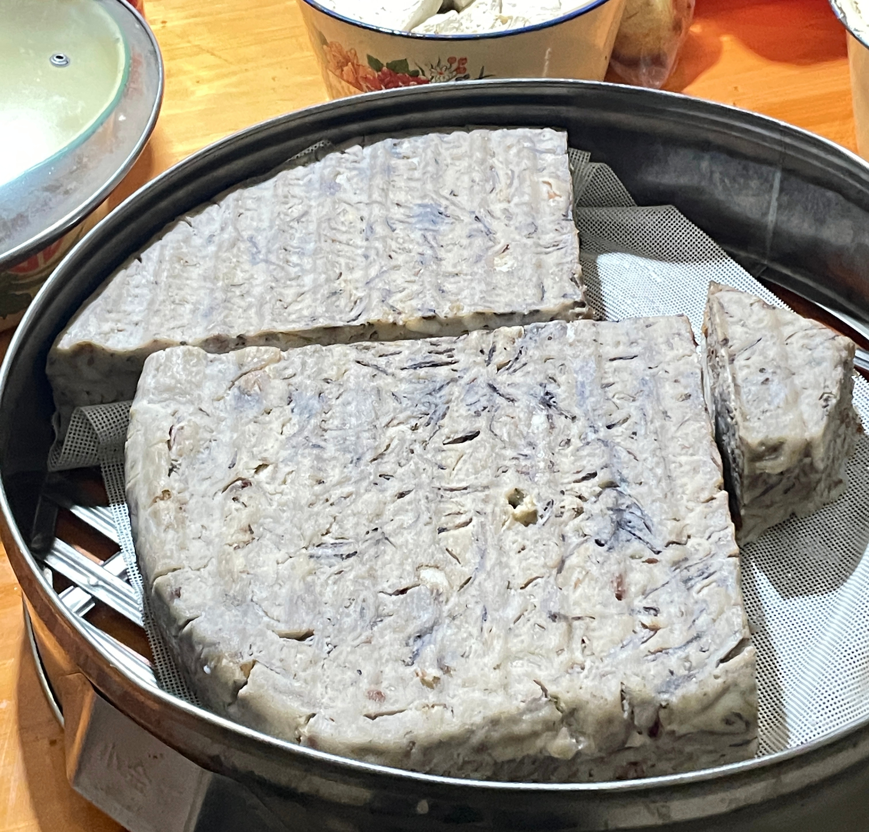 我的老家在福州闽侯,从小最爱吃的,就是奶奶做的芋头糕。糕里裹着满满的芋头丝,藏着些许咸香的肥肉丁。可以煎,也可以炸——切片下锅煎到两面金黄,外头是焦香的脆壳,里头软嫩得恰到好处;上锅蒸又是另一番风味,糕体弹牙,芋香和米香在热气里交融。这味道,外面买不到,是独属于奶奶的手艺。