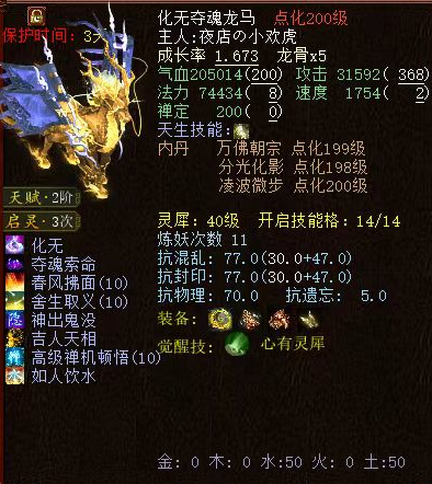 前面大胖报道过这只龙马,有老铁说图片太小看不清,那么这次就来个补发,另外介绍下这只龙马的化无是吃了九手吃出来的,现在是化无加夺魂索命之貌,实在是养眼。
