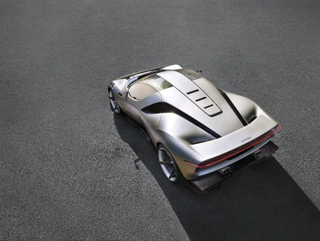 SP48 Unica 是另一款基于 F8 平台(这次是 Tributo)的One-off作品。法拉利保留了那台 3.9 升双涡轮增压 V8 发动机,功率为 710 马力,但使用程序化-参数化建模和 3D 原型制作技术重新设计了外部车身面板。其结果是一个全新的前脸、重新造型的侧进气口以及一个没有后窗的独特车尾处理。