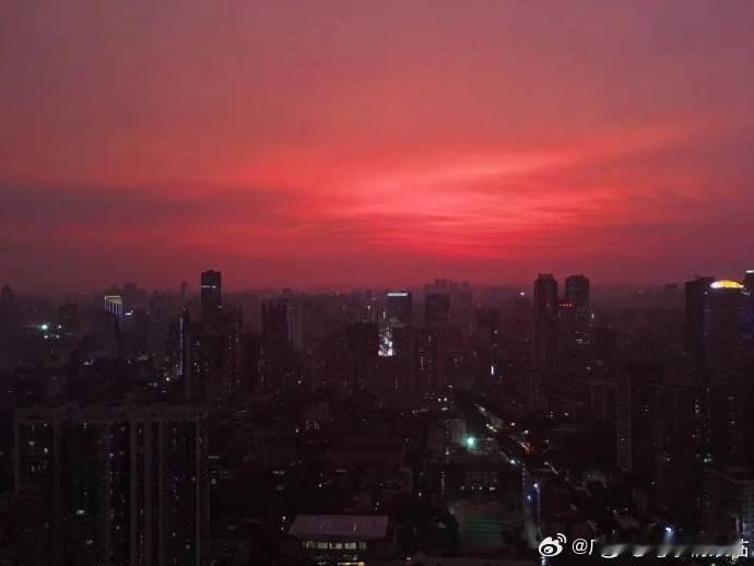 【广州火红色晚霞】今天你看到的天空是什么颜色?晒一晒你拍到的晚霞吧[心]