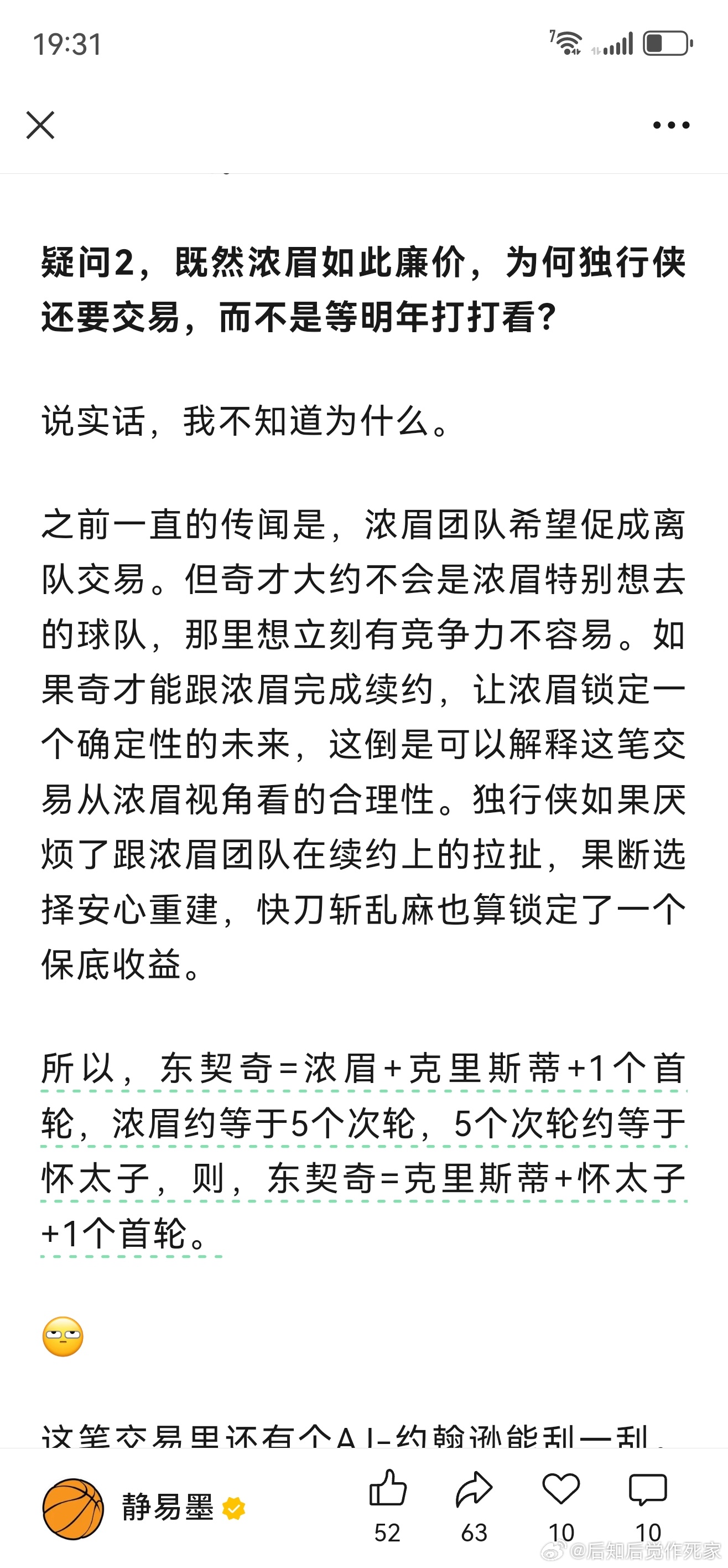 结果热火毫无动作,这当然首先是因为字母交易暂停了,也说明雄鹿对截止日送走字母的回