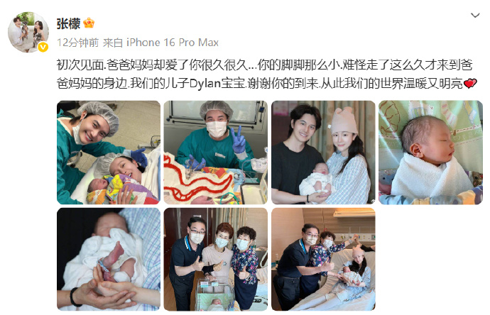张檬小五得子张檬儿子出生 17日,晒出与丈夫“小五”产房合照,官宣儿子Dy