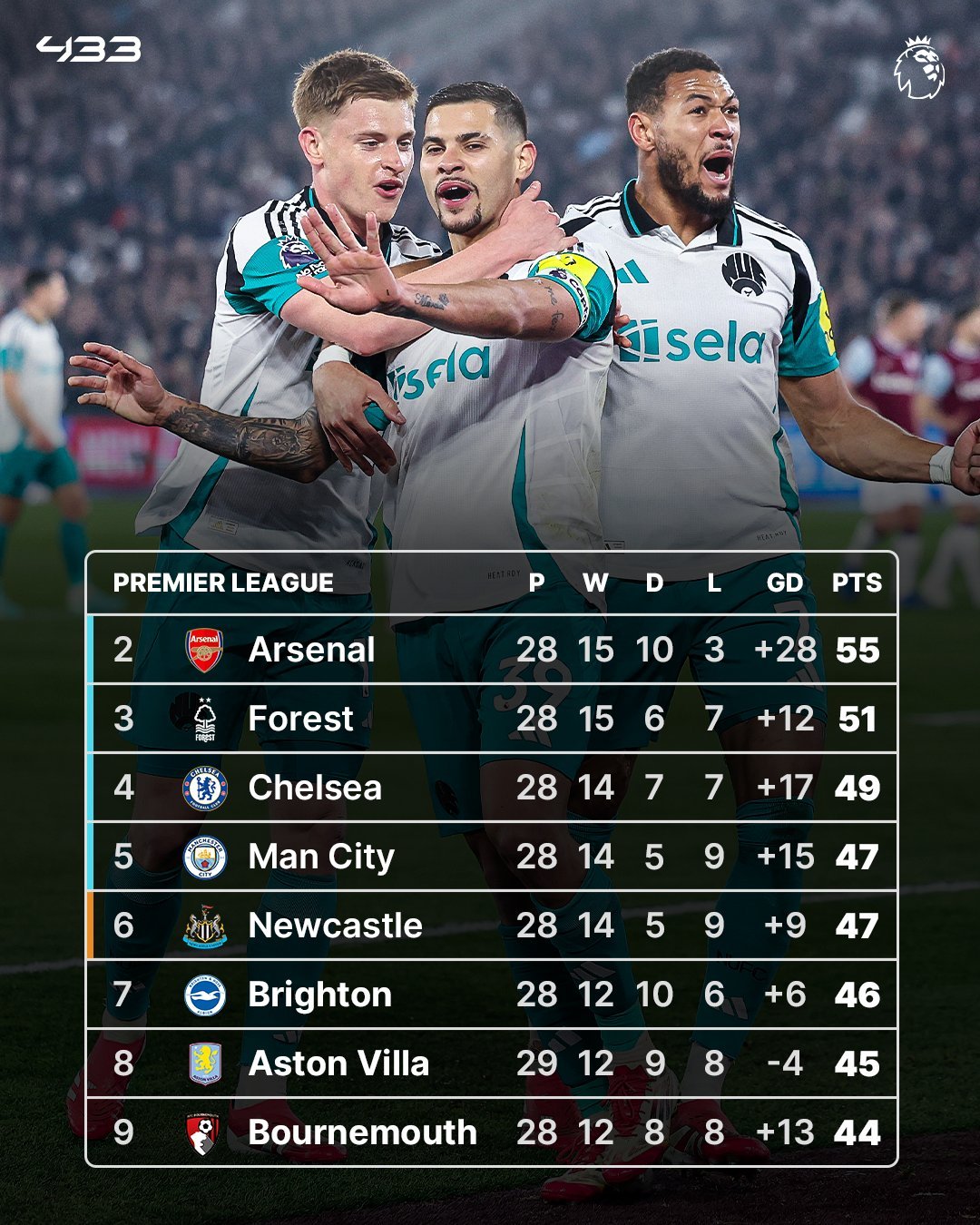 纽卡斯尔联队积分与曼城队持平👀📊