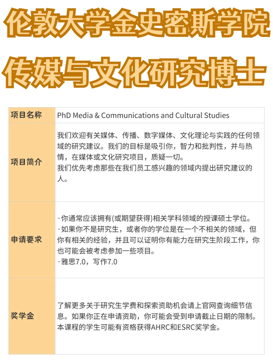 伦敦大学金史密斯学院丨传媒与文化研究博士